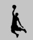 Un hombre de baloncesto de silueta negra con fondo gris.