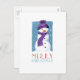 Diseño de postales Navidades sencillo y moderno con un muñeco de nieve con bufanda y gorra morado. Envíe a sus amigos o manténgalo como parte de su propia colección. Espacio al revés para que sus Navidades saluden. Derechos reservados © Lisa Marie Robinson. Todos Los Derechos Reservados.