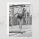 Hombre parado en una tabla de submarinismo, preparándose para bucear (B&W) | George Marks | AssetID: 72131098