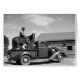 Hombre en un caballo con un perro en un camión. Fotografíe por Charles Belden, tomado en el rancho del Pitchfork cerca de Meeteetse, Wyoming.