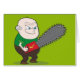 Éste es un ilustracion del dibujo animado de un más viejo hombre intrépido que esté mirando un poco enojado su motosierra. ¡Esperémoslo está planeando solamente en el corte de un árbol y nada más malvados!