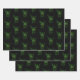 Una cara de hombre verde del folclore celta situada en un fondo negro. Hojas verdes.