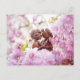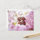 Elfo de Acorn en el flor árbol sakura - graciosa postal de posttravesía de primavera