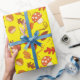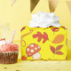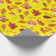 "Hongos amarillos, hojas papel de envolver sin foco" muestra ardillas, castañas, hojas y setas en un hermoso paisaje otoñal. Perfecto para envolver regalos para cualquier celebración de temporada.
