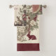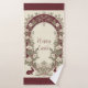 The Hoppy Easter Bunny Art Nouveau Burgundy Farmhouse Bath Towel Set draws inspiration from the iconic Art Nouveau style known for its organic lines, botanical flourishes, and nature-inspired motifs. In this artwork - graceful vines, delicate flowers, and ornamental patterns intertwine harmoniously around beautifully illustrated Easter bunny. The result is a design that feels both nostalgic and luxurious, perfect for those who love vintage aesthetics, European-inspired décor, or museum-quality design elements in their home. The burgundy floral palette adds a sense of timeless sophistication rarely seen in traditional Easter décor. Instead of bright pastels alone, the rich wine-colored florals create an elevated look that blends seamlessly with vintage bathrooms, cottagecore interiors, and elegant farmhouse decor. The text 'Hoppy Easter' is customizable.