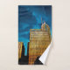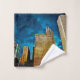 La imagen dramática del horizonte de la ciudad de Chicago como sol poniente hace los edificios brillar intensamente oro y oscurece los cielos detrás de los edificios para crear enorme contraste