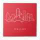 Características del este diseño un bosquejo dibujado mano del horizonte de Dallas en Borgoña.
