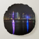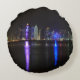 Almohada de tiro redonda con los rascacielos iluminados en el horizonte del centro comercial de Doha, la capital del país árabe Qatar del golfo en la noche.