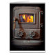 Puerta de la caja de fuegos de una estufa ardiente de madera retra.