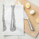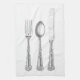 ilustracion vintage de tenedor, cuchillo y cuchara, sobre una gran toalla de cocina.  ¡Personalizar a tu gusto!
