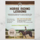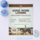 Promote your equestrian business with this customizable Horse Riding Lessons Flyer Template. Perfect for ranches, riding schools, and equestrian centers, this modern design lets you easily add your own photos, contact information, and lesson details. Ideal for advertising horseback riding lessons, camps, or special events at your ranch or stable.