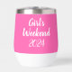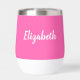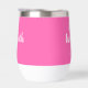 This hot pink wine tumbler is perfect for a girls' weekend! This stylish and durable tumbler can be personalized with white script, making it a perfect accessory for enjoying your favorite wine on the go. It's an ideal choice for a birthday celebration, a bridal party gift, or a thoughtful token of teacher appreciation.