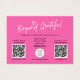 This Trendy modern QR code gift card with stylish calligraphy script is a perfect choice to show your gradtitute to your customer. Features 2 QR code, social media and networking info. On the back of the card you can write more message to your customer or just write your business info. Your customer will loves this pretty and chic QR code gift certificate.