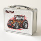 This high-octane personalized boys' Racing Tractor lunch box features a heavy-duty tractor decked out in classic hot rod flames and aggressive red accents.
