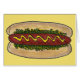 El diseño presenta un ilustracion original de marca de un perro caliente con mostaza y deleite, impreso en un fondo amarillo. ¿No ves lo que estás buscando? ¿Necesita ayuda con la personalización? Contacte con Rebecca para que tenga algo diseñado para usted.
