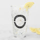 Vidrio de cerveza del hotel o copa con el nombre y la ubicación del hotel.