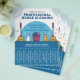 A professional house cleaning services flyer design with tear-off tabs in blue tones, cleaning equipment illustrations (brooms, bucket and spray bottles), and stars to emphasize cleanliness.