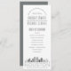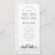 Un programa de bodas con temática de skyline para un boda que tiene lugar en la hermosa ciudad de Houston, Texas. Esta tarjeta de programa de bodas presenta un ilustracion estilizado del paisaje único de la ciudad con su nombre debajo. Esta información se encuentra debajo de la información del día de la boda, en un estilo de línea abierta. En el reverso hay un suave color gris níquel con más detalles bodas en texto blanco para complementar el frente. Una manera elegante de dar la bienvenida a los que se encuentran fuera de su ciudad, mientras que les ofrece información útil sobre su serie de eventos de ceremonia boda.
