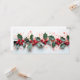 Large branche de houx rouge avec points colorés rouges sur fond blanc. Festif et discret.