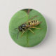 Este hermoso botón muestra una detallada fotografía de una hermosa mosca franja negra y amarilla que descansa en una hoja. La fotografía fue tomada usando macrofotografía para una imagen de cierre fantásticamente detallada y nítida.