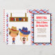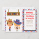 ¡Qué Bien! Tener un fiesta o un rodeo. Esta invitación americana de vaqueros y vaqueros es adorable. Tiene pequeñas estrellas rojas en el lado izquierdo y en el centro. En un fondo blanco hay un vaquero con un gran gorra de vaquero. Lleva pantalones cortos azules con estrellas blancas y una camisa roja con un chaleco salvaje. Hay una vaquera con colas de cerdo trenzadas rubias. Está usando un gran gorra azul con estrellas blancas y una banda roja. Encima hay un cartel marrón que dice "Oeste salvaje" en rojo, blanco y azul. En la mitad derecha de esta invitación se encuentra un rectángulo blanco donde se agrega la información personalizada del fiesta. En el exterior hay un borde rojo, blanco y azul trenzado. Consulte todos los demás diseños y productos que tenemos en nuestra tienda. ©grafo