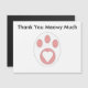 Una adorable tarjeta postal con una huella de gato en blanco y negro con un corazón y el texto "Muchas gracias Michi". ¡El texto se puede personalizar según tus necesidades!