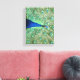 La brillante cabeza azul y el cuello de este pavo real sobresalen contra las plumas de cola que se abalanzan para mostrar los "ojos".