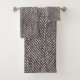 Toallas modernas de baño con estampado de arenque marrón café oscuro.