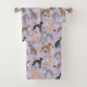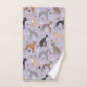 Los canes italianos gallegos se sientan y se ponen de pie con abrigos grises, afeitados, negros, rojos, y azules con huesos de perro dispersos y motivos de huellas.