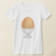 Un huevo hervido sentado en una taza de huevo. Este diseño se ve realmente efectivo en esta camiseta femenina