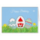 Huevos pintados de Pascua y la preciosa tarjeta de cumpleaños gnome. El texto se puede personalizar.