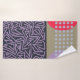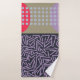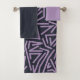 Este juego de toallas tiene un lavanda de lavanda, una toalla de mano de la marina y una toalla de baño con un diseño abstracto moderno de mediados de siglo con tres diferentes orígenes, líneas de zigzag, óvalos y círculos, en marina, azul claro, rojo, caqui y lavanda. Si quieres el mismo diseño con colores diferentes, envíame un mensaje.