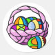 dibujo de huevos de Pascua pintados con formas geométricas en colores vivos en una cesta.