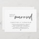 Tarjeta de invitación de huida de boda con tema de escritura minimalista moderna (acabamos de casarnos). Es perfecta para su recepción de huida de boda / fiesta de celebración después de la boda. Agregue sus detalles en fuente / letra negra coincidente.