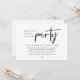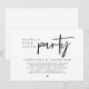 Tarjeta de invitación de huida de novios con tema de escritura minimalista moderna (fiesta feliz para siempre). Es perfecta para la recepción de huida de novios / fiesta de celebración después de la boda. Agrega tus detalles en fuente / letra negra a juego.