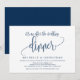 Esta tarjeta de invitación con diseño de caligrafía moderna (es "Una cena después de la boda") es perfecta para la celebración de su fuga de la boda / fiesta de anuncio. Agregue sus datos en fuente / letra azul marino a juego.