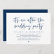 Tarjeta de invitación de boda con tema de escritura azul marino moderno (después de la fiesta de bodas). Es perfecto para su recepción de boda / fiesta de celebración después de la boda. Agregue sus detalles en fuente / letra negra coincidente.