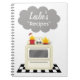 Un cuaderno de la receta que ofrece un ilustracion de una estufa inspirada retra que se sienta en una superficie blanco y negro. El pote y la cacerola rojos en estufa tienen llamas el tirar de ellas y una nube del humo asoma sobre la estufa. Una gran manera de reírse de su propia falta de habilidad culinaria….¡no reccomened como regalo para otros! Personalice con su nombre.