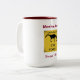 Humor #3 del café: Taza de café. Texto y imagen en la frente centro de la taza de café.