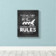 Una pintura mural de lienzo de cocina tiene humor de texto que cita fondo de color gris carbón con texto en blanco para divertida decoración casera.