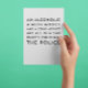 Una tarjeta de saludo de sobriedad divertida, perfecta para la recuperación de Alcohólicos y Adictos. La adicción es una enfermedad difícil pero puede ser útil recordar reírse de nosotros mismos y no tomarnos tan en serio. Esta tarjeta de saludo te ayudará a hacer justamente eso.