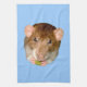 Esta impresionante toalla de cocina muestra una bonita fotografía de una adorable y pequeña rata mascota, morena y blanca, que está comiendo un regalo y que ciertamente disfruta de sus deliciosos dulces.