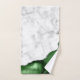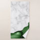 Este lujoso conjunto de toallas de baño combina el mármol blanco elegante y la barra verde del cazador con un falso purpurina plateado.