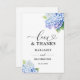 Hydrangea Dusty Blue Floral Boda Gracias Tarjeta