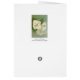 Esta tarjeta de saludo está decorada con cuadros en tonos pastel en tonos suaves de marfil y verde que representan flores y capullos de hortensias. El texto interno se personaliza fácilmente.