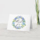 Tarjeta de agradecimiento caprichosa y elegante con corona de hydrangeas en acuarela azul y púrpura. Esta tarjeta de agradecimiento personalizable con corona floral es perfecta para uso personal y eventos especiales como bodas y graduaciones.