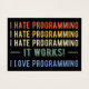 Diseño divertido, perfecto para todo aquel que sea programador, especialista en tecnología, codificador, ingeniero informático, estudiante de TI o alguien que ame codificar! 'Odio La Programación. ¡Funciona! Me encanta la graciosa cita de Programadores, entusiastas de la tecnología, programadores y desarrolladores. ¿Te encanta trabajar en tecnología y eres parte del equipo de tecnología? ¡Acentúa tu estilo con este arte genial! Gran regalo para un estudiante universitario de TI, empleado especializado en tecnología, trabajador de tecnología o profesor de ingeniería informática.