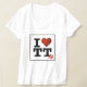 Texto negro con corazón rojo y diseño de huellas de pata roja que declara tu amor por TT