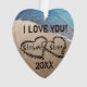 ¡Ahora la forma popular del corazón también está en acrílico! Añade fácilmente tus propios nombres personalizados o cualquier texto (el ejemplo mostrado dice: "¡Te amo!", y sólo agrega el año deseado) con los nombres de la pareja especial o de la futura novia y novios recién casados en el corazón para personalizar este hermoso adorno de corazón popular con una foto original de dos corazones escritos en la arena a lo largo del agua azul del océano para representar amor y romance. Gran concepto de amor, viajes, recién casados, y próximo verano salven las bodas de playa de dátiles. Un adorno divertido, lindo, personal y único de honor para dar a esa persona especial, novia o novio, novia y novio o pareja de novios. ¡Este diseño está en ambos lados sin costo adicional! Vea nuestra gran colección de regalos en este diseño en la tienda MVDesigns.