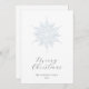 Elegante tarjeta azul hielo de copo de nieve "Feliz Navidad". Diseño detallado de copos de nieve azules con caligrafía elegante. Personalizar con su mensaje y apellido en caligrafía marina oscura y letras serif. Diseñado para coincidir con nuestra colección de Navidades de copos de nieve azul.
